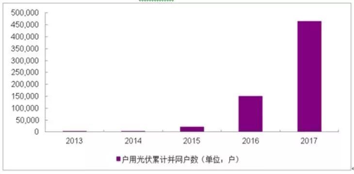 2013年底,國(guó)家層面的分布式光伏補(bǔ)貼政策正式發(fā)布,2014年-2015年相關(guān)政策逐漸滲透到基層,2016年前后,光伏行業(yè)巨頭開(kāi)始布局戶用市場(chǎng),進(jìn)入2017年,相關(guān)業(yè)務(wù)開(kāi)始逐步落地。2017年全年全國(guó)戶用累計(jì)并網(wǎng)戶數(shù)達(dá)到46.5萬(wàn)戶,同比增長(zhǎng)超過(guò)200%。2018年上半年分布式光伏新增裝機(jī)1224萬(wàn)千瓦,同比增長(zhǎng)72%,新增規(guī)模首次超過(guò)集中式光伏,體現(xiàn)了光伏發(fā)電未來(lái)的發(fā)展方向。