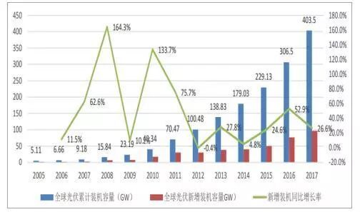 全球光伏累計(jì)裝機(jī)和新增裝機(jī)容量